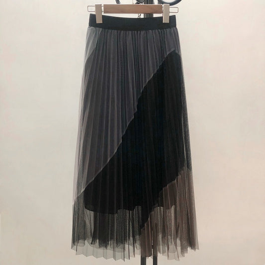 New color mesh gauze skirt, matching color splicing pleated skirt 3702