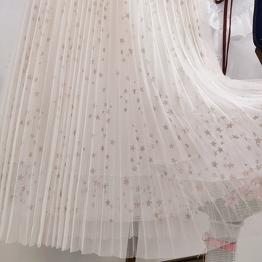 thousand bird shape skirt, high waist pleated skirt, medium and long gauze skirt 3701