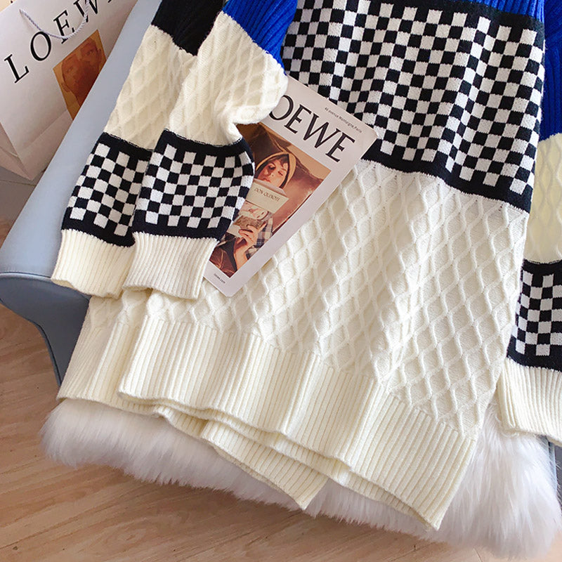 Checkerboard turtleneck sweater dress 5210