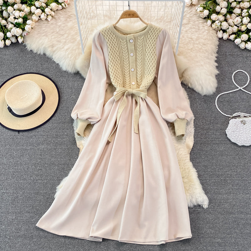 Crew neck twist knit stitched dress 3267