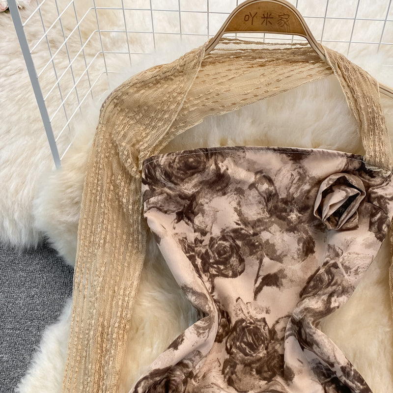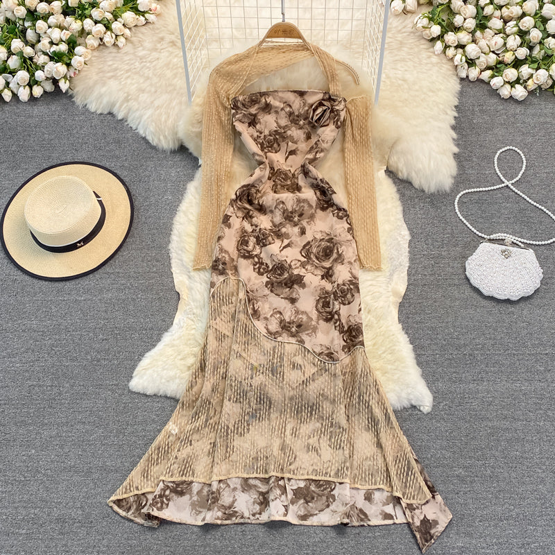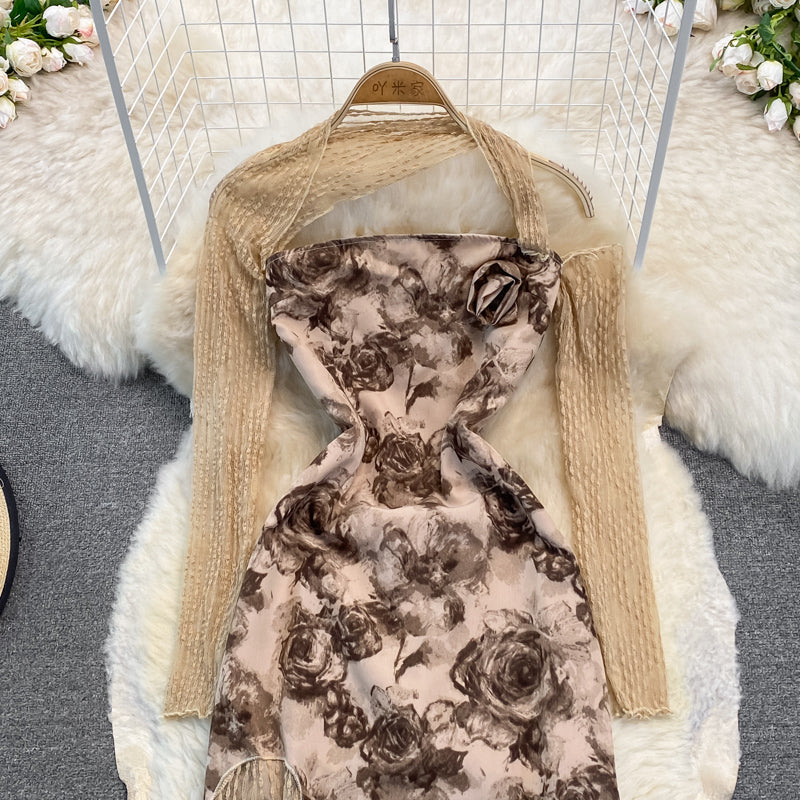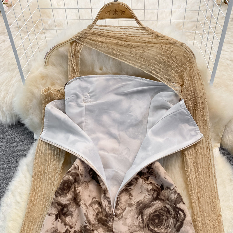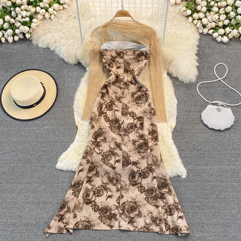 French fairy skirt super fairy rose printing gentle wind split skirt 3745