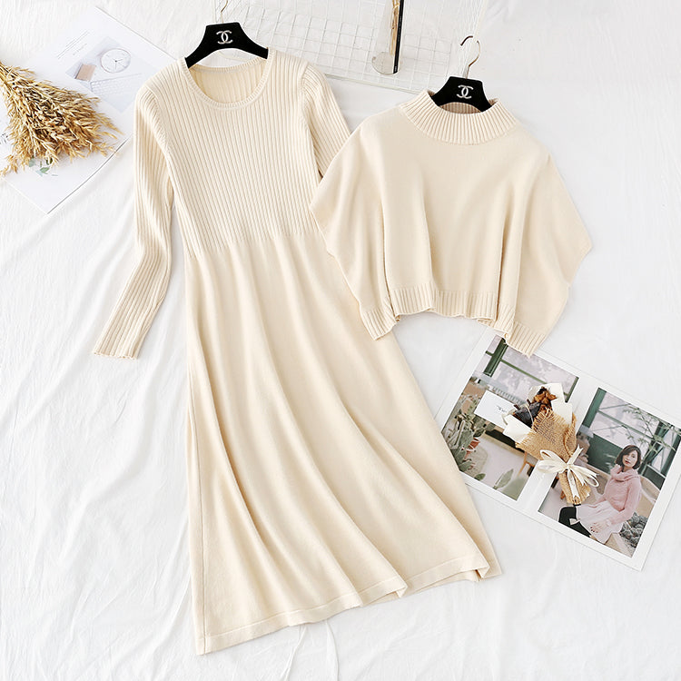 French retro waist closing thin temperament sweater long skirt suit 3943