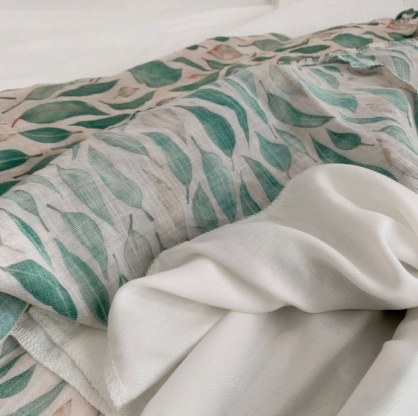 High sense ,Literary style, silk ramie, blended leaf printed A-line skirt 3635