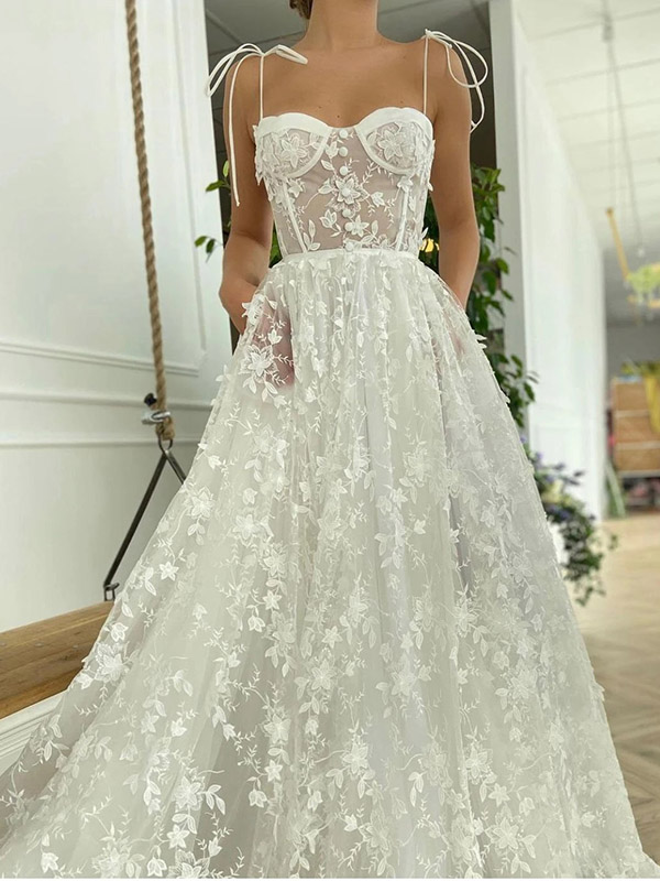 Lace See-Through Underwired White Color Wedding Maxi Dress gh1791