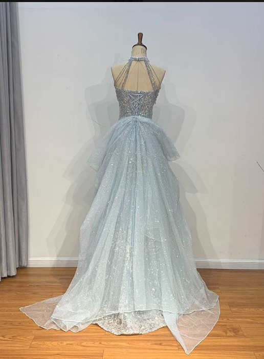 Light blue elegant gorgeous exquisite beaded long Tulle shining ball gown evening dress wedding dress gh4353
