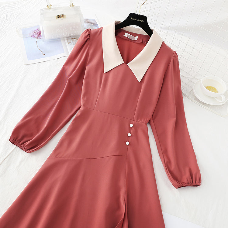 Narrow waist and slim temperament French retro care machine split skirt 3873
