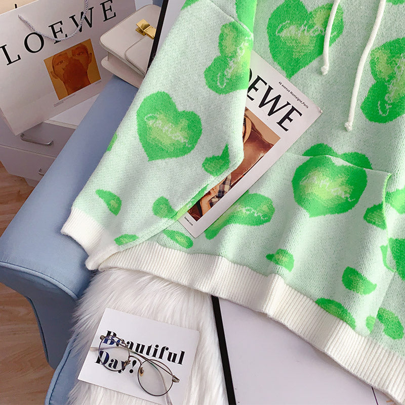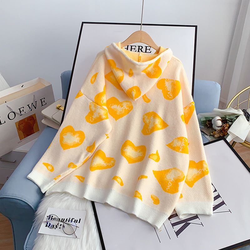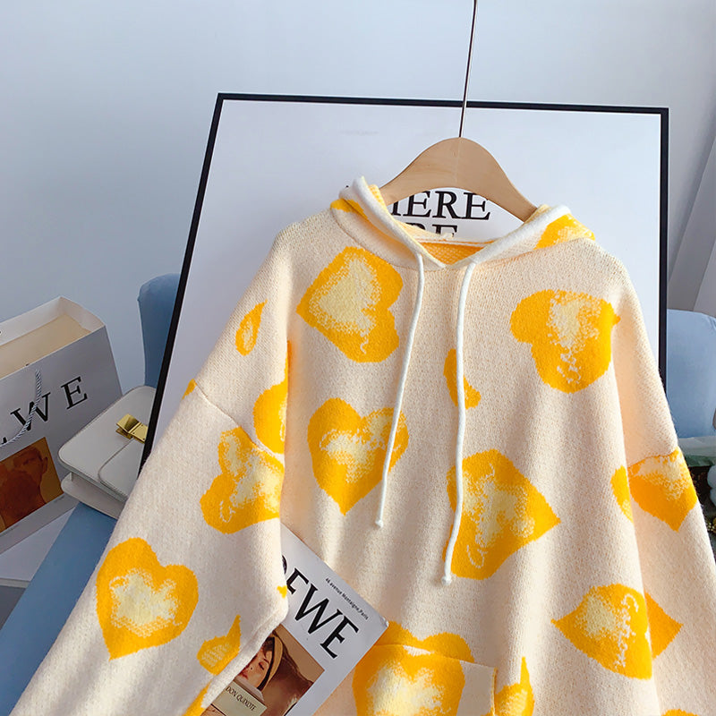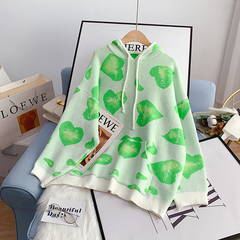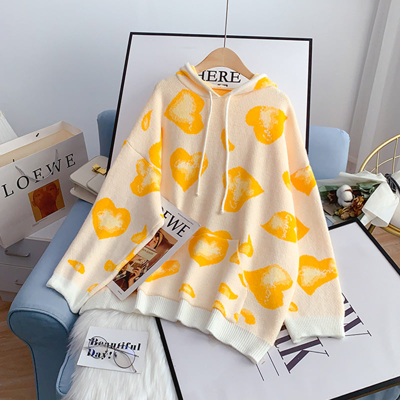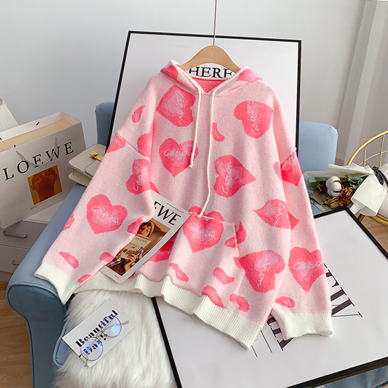 Net red love sweater sweater women's loose hooded Pullover 5114