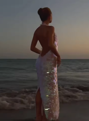Pink Shiny Fashion Sequin Long Sling Travel Holiday/Birthday/Cocktail Party Dress gh4859