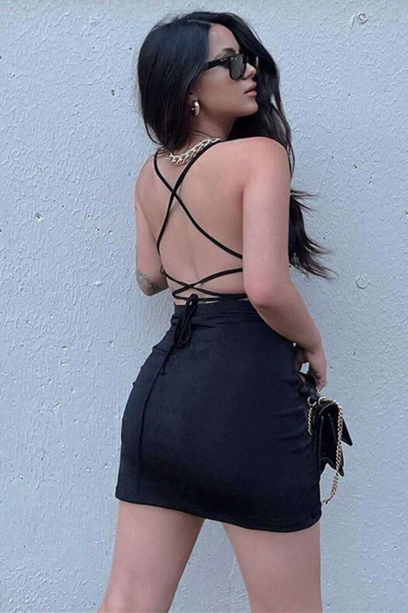 Red Cowl-Neck Lace-Up Bodycon Short Party Dress with Slit gh1310