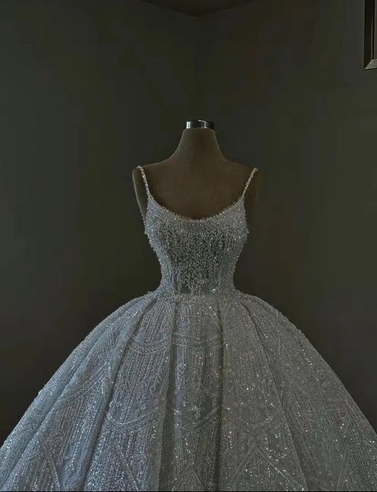 White shiny fashion exquisite beaded long elegant tulle floor-length ball gown evening dress wedding dress gh3351