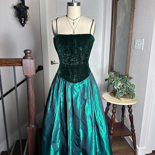 Dark Green Vintage Fashion Floral Swirl Pattern Corset Long Satin Velvet Corset Style Formal Prom Dress Evening Gown gh3687