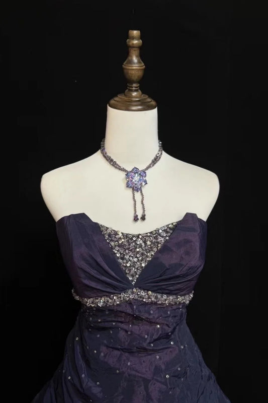 girlhomeshops-Purple Night Starry Sky Long Satin Ball Gown gh6294