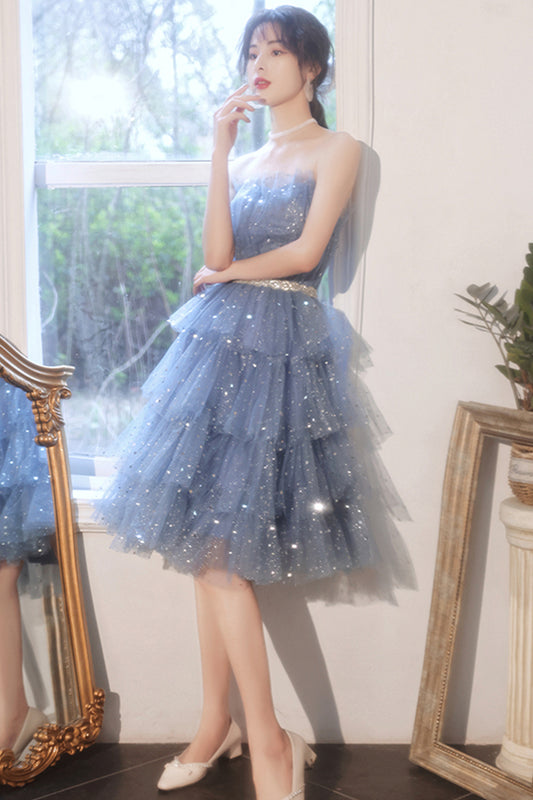 Champagne tulle sequins long A line prom dress evening dress 8683