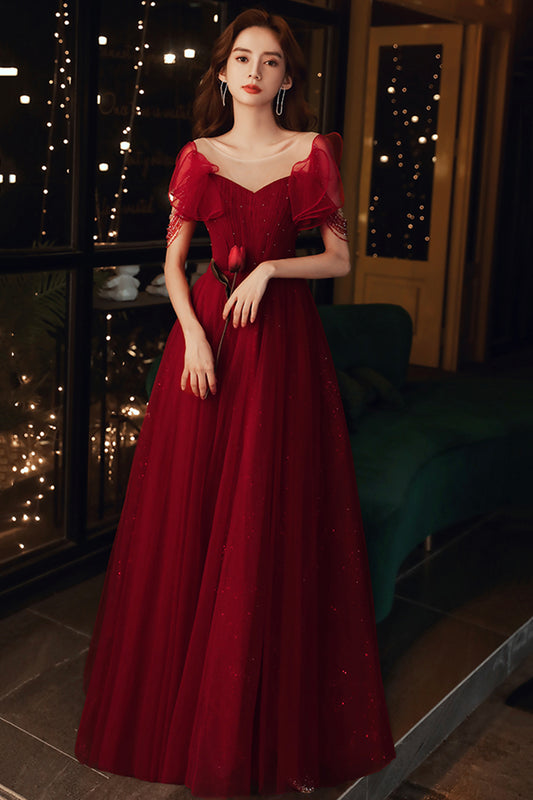 Lovely A line tulle pearl long prom dress evening dress 8685