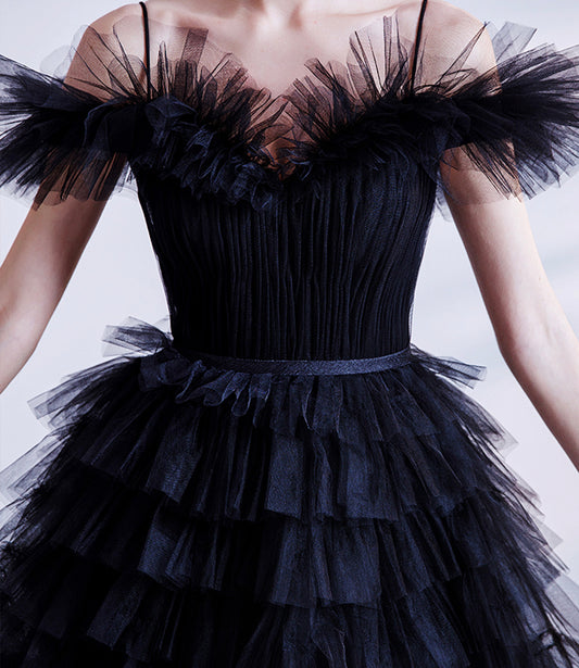 Yellow tulle short A line prom dress yellow evening dress 8933