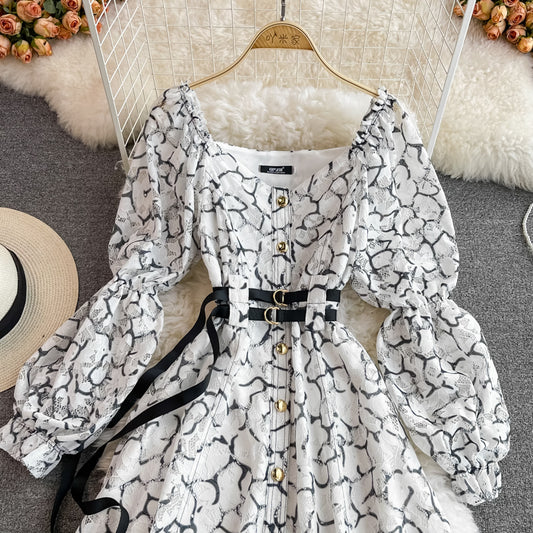 V-neck single breasted high waist slim lace dress 3124