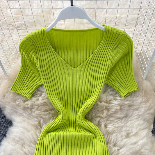 V-neck slim knit dress Hip Wrap 2973