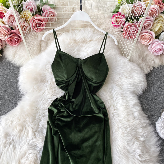 Vintage Hepburn velvet dress split Strapless suspender dress 3142