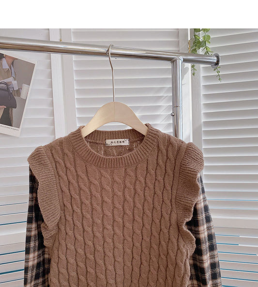 Vintage Linen knitted Plaid long sleeve sweater 6141