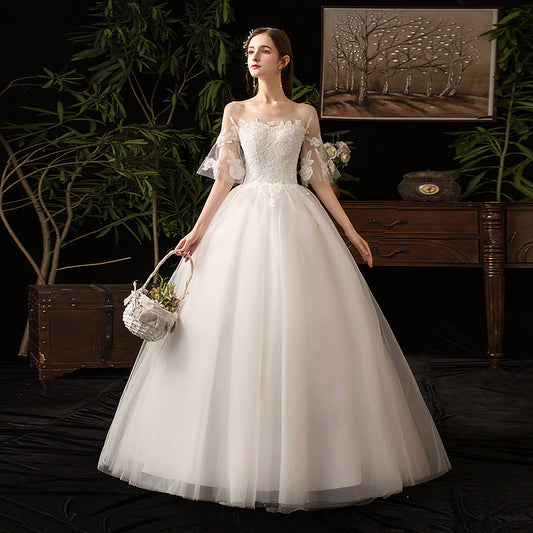 White sweetheart neckline long tulle off-shoulder A-line princess wedding dress designer wedding dress gh2452
