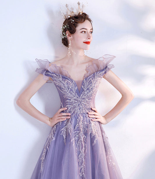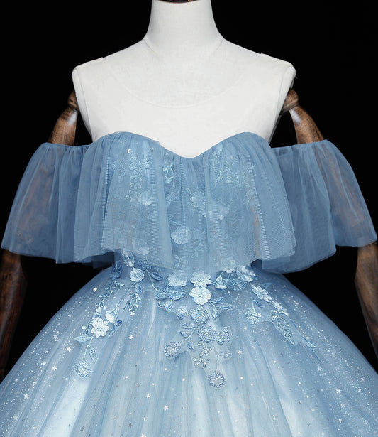 Blue tulle lace long ball gown dress A line formal dress 10461