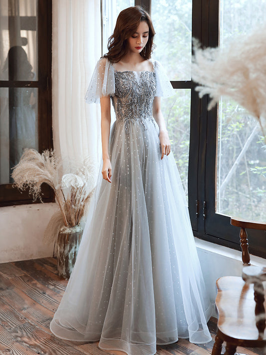High quality A line tulle long prom dress bridesmaid dress 8370