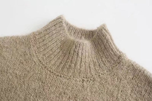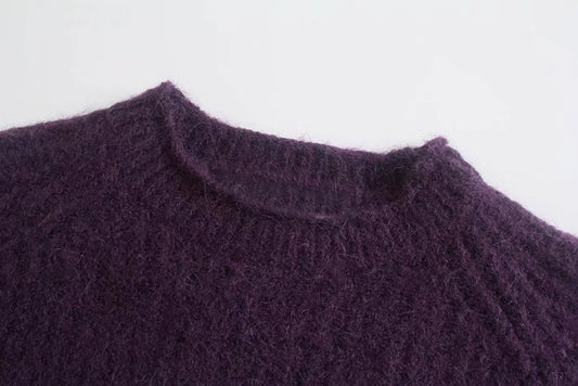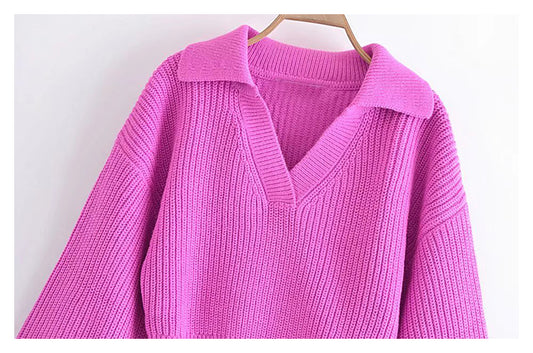 Lapel V-neck Lantern Sleeve Sweater Vintage short sweater 7349