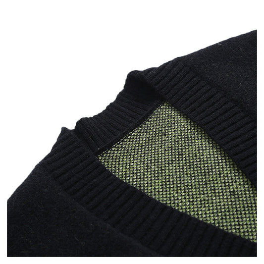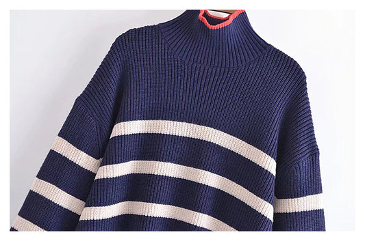 Loose Vintage high neck contrast striped sweater sweater sweater 7347