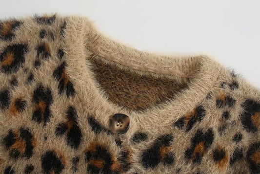 Irregular button round neck long sleeve knitted cardigan sweater 7358