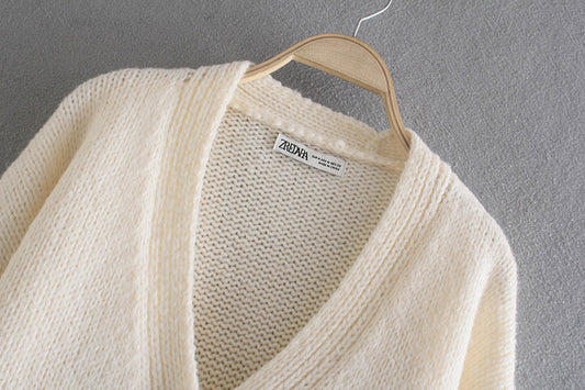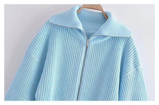Versatile Lapel solid knit cardigan long sleeve sweater 7356