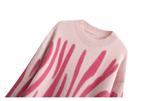 Lazy style retro irregular stripe crew neck loose long sleeve sweater 7359