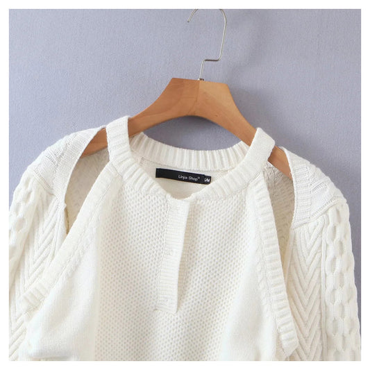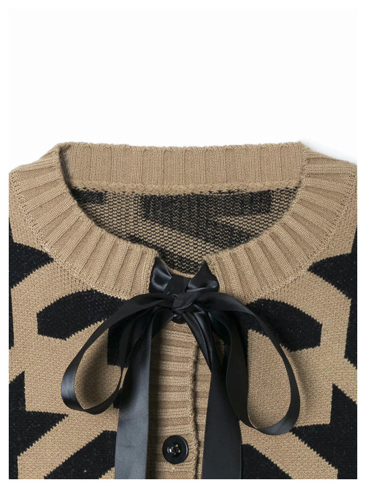 Bow diamond sweater knitted Lantern Sleeve Jacket 7225