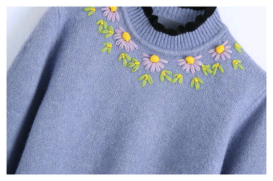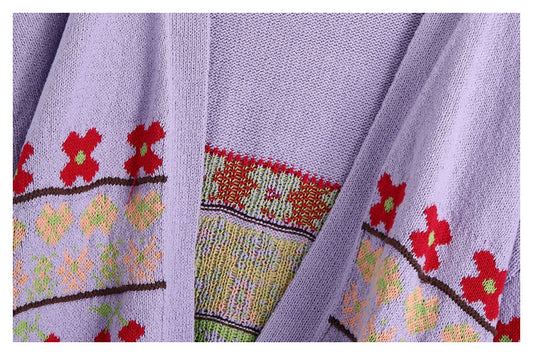 Flower sweater cardigan high waist single breasted long sleeved sweater 7222
