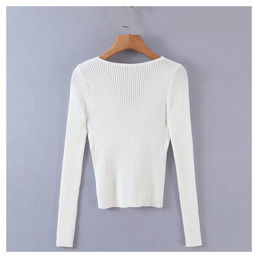 V-neck waist with exposed navel and long sleeve knitted cardigan 7229