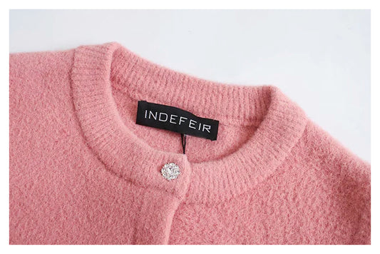 New women's fashion versatile Vintage large lapel knitted cardigan 7235