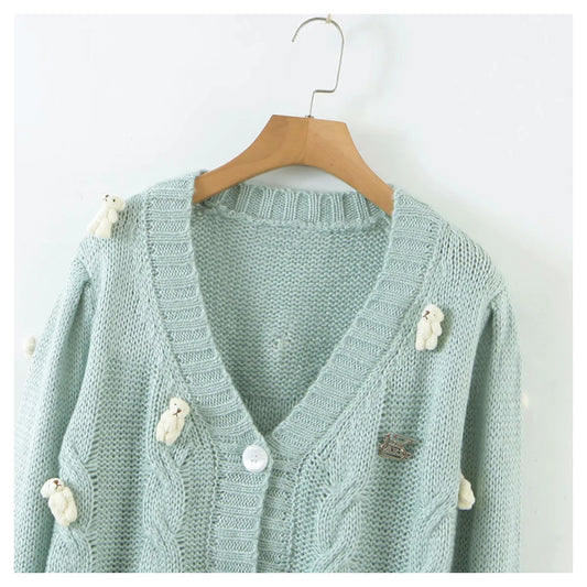 Cartoon little bear knitted cardigan cute loose sweet cardigan jacket 7236