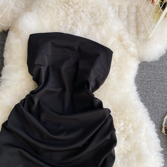 Sexy one shoulder strapless dress temperament close waist thin fishtail skirt 3290