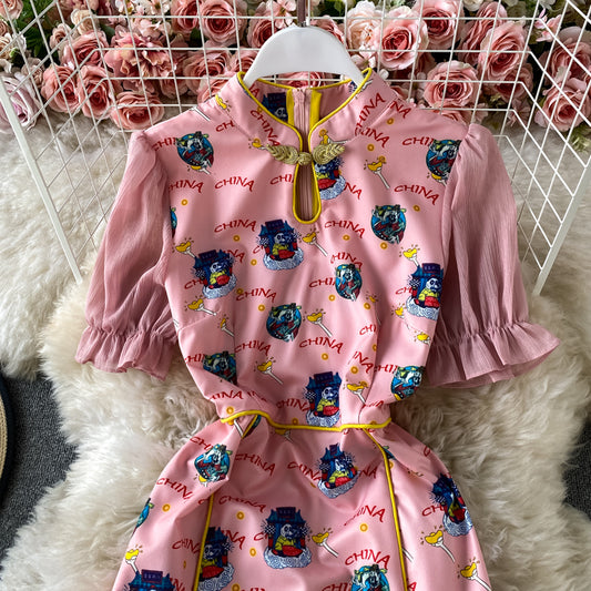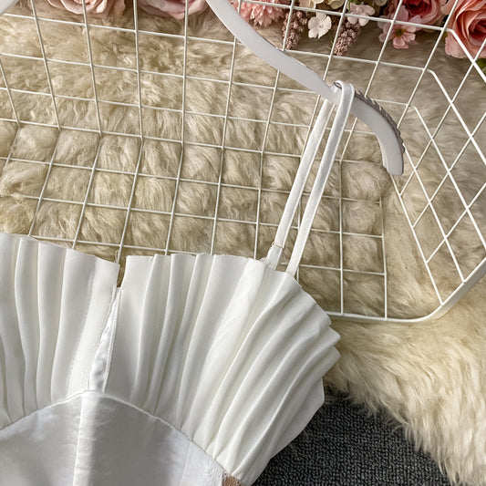 Super fairy open back fluffy skirt French retro suspender skirt 3298