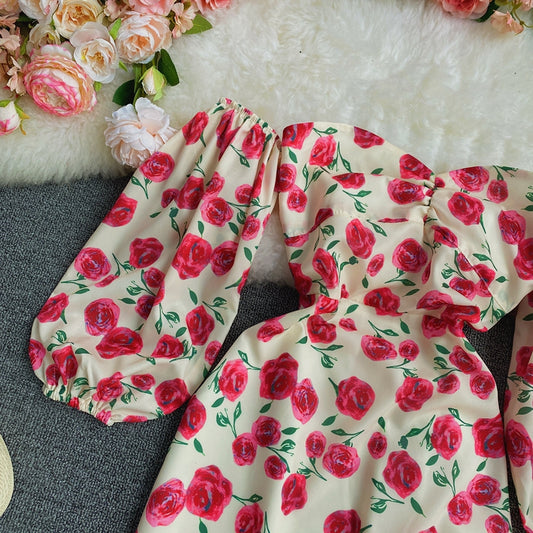 Slim waist, off shoulder, age reducing temperament, large swing skirt 3287