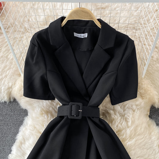 Slim waist, solid color short sleeve suit dress 3197