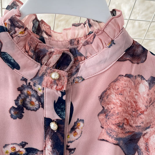 Slim waist and slim temperament French Vintage Chiffon Dress 3198