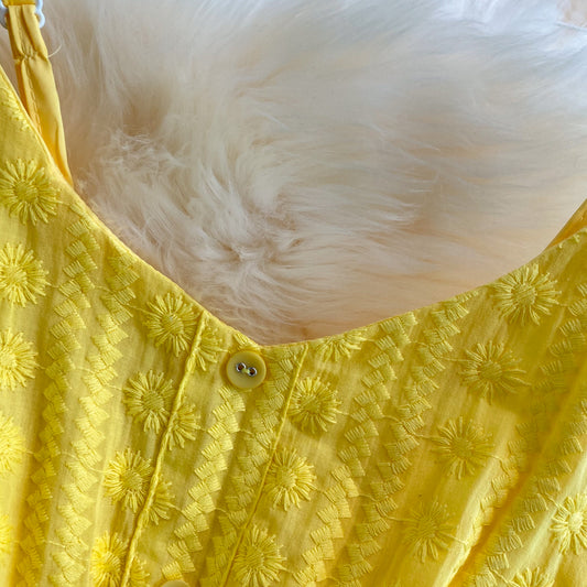 Gong Tingfeng embroidered short sleeve mesh waist closing dress 3199