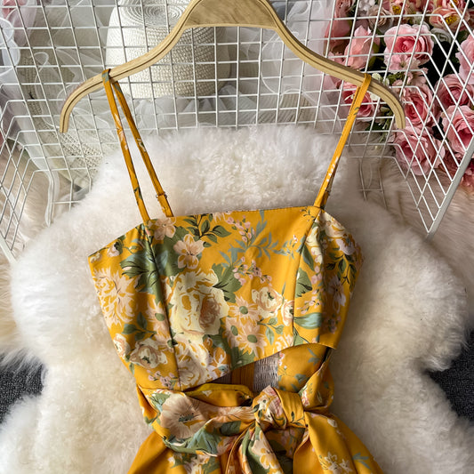 Seaside holiday French long suspender dress 3201