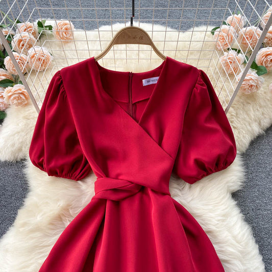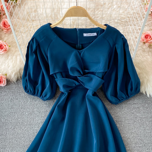 Simple v neck short dress fashion dress 512