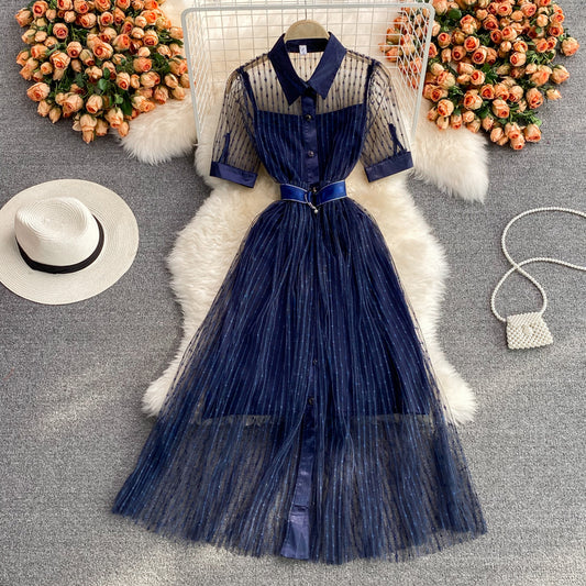 Blue A line short dress fashion dress 508