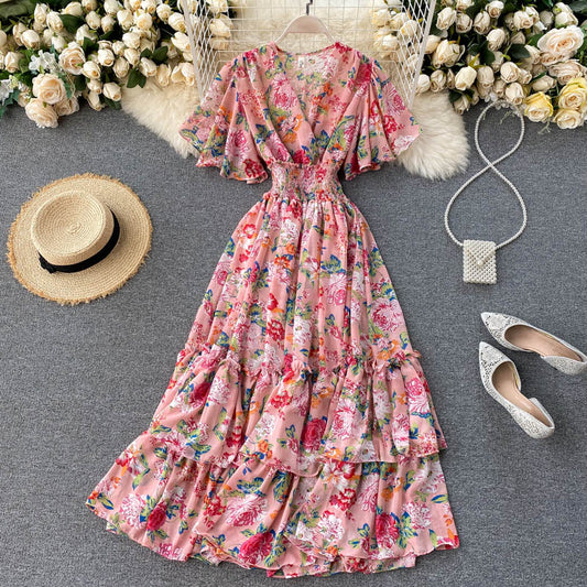 Cute v neck floral dress A line fashion dress 502