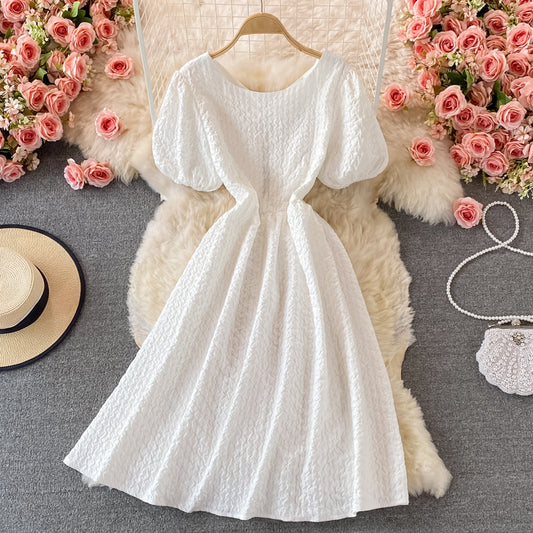 Cute round neck short A line dress fashion dress 498