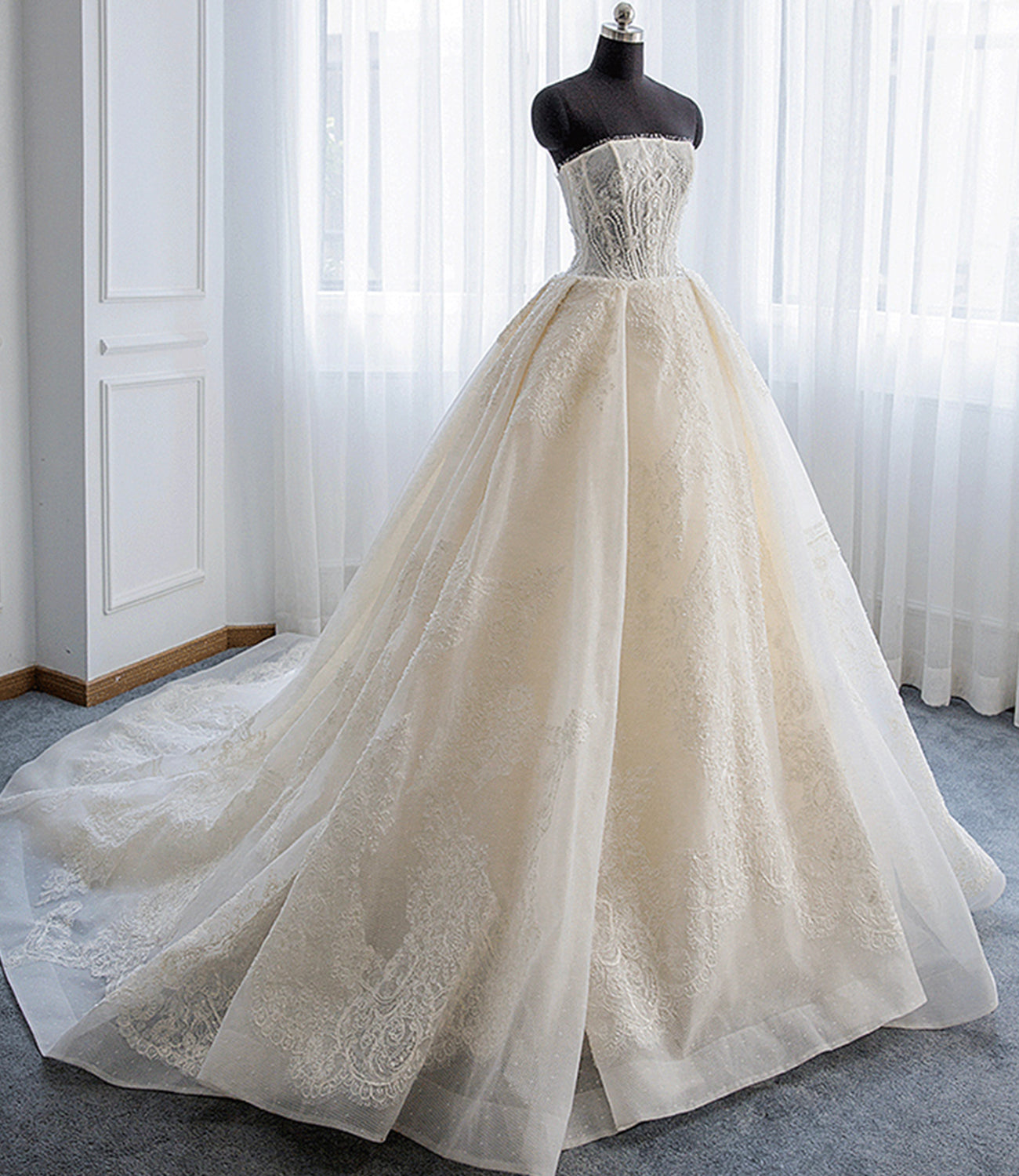 Champagne tulle lace long ball gown dress formal gown 10367