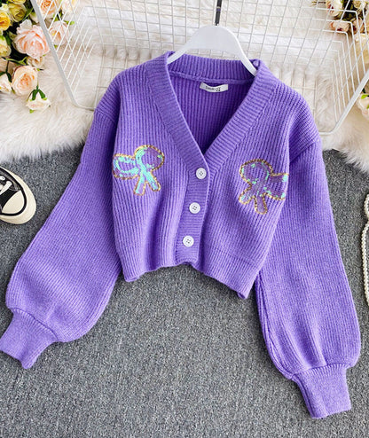 Cute loose sequin sweater short sweater
