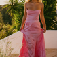Pink Fashion Lazy Spaghetti Straps Elegant Long Satin Two Piece Prom Dress Evening Dress Party Dress Wedding Holiday Birthday Party Dress gh2849